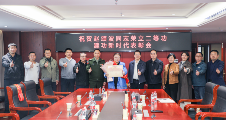 雨花区委常委、区人武部政委张永波现场宣读赵颂波的立功通令,并将精心装裱的立功喜报送至李湘手中。区退役军人事务局党组书记、局长刘革新为李湘佩戴“一人立功 全家光荣”的绶带,砂子塘街道党工委书记王卓为她送上鲜花。军地领导与军人军属亲切交流,共享这份荣光与喜悦。